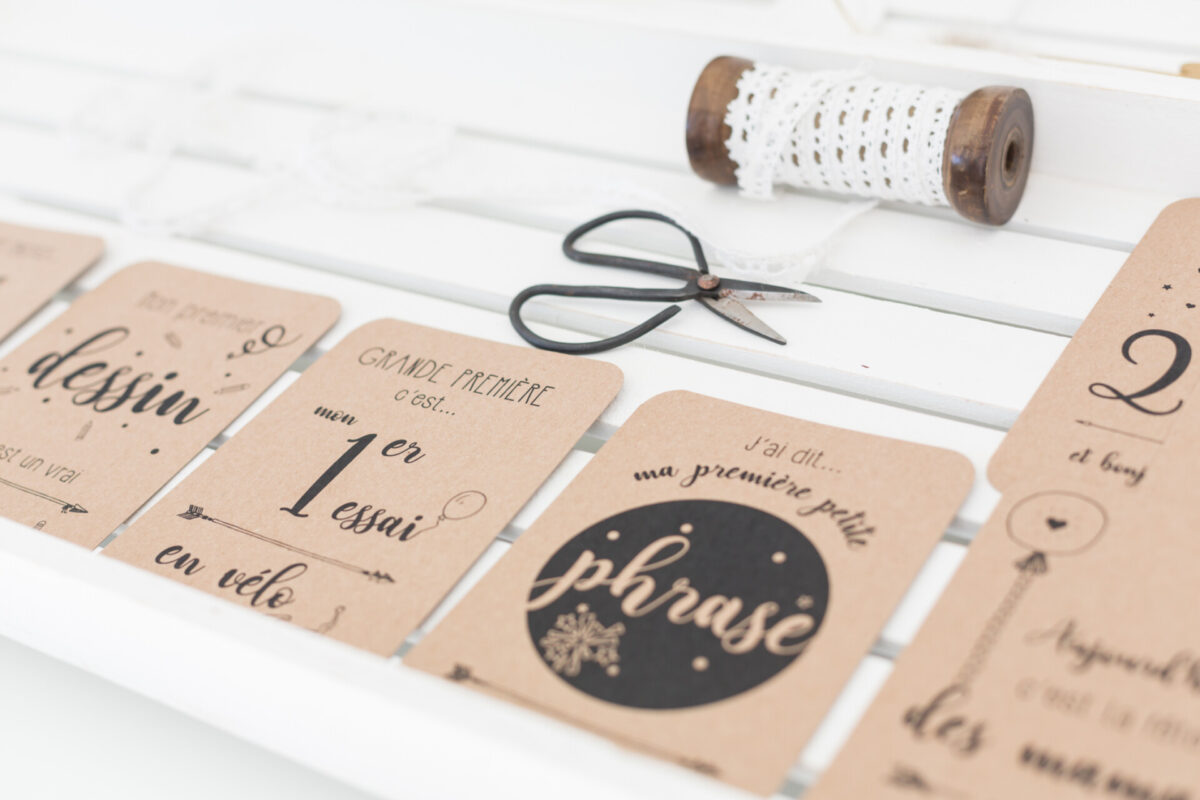 Cartes étapes bébé pour faire de jolies photos et garder des souvenirs de son évolution.
